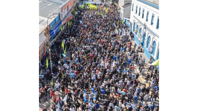 En segundo lugar, Bustos señala en el párrafo referido que “muchos hablan desde la seguridad de un empleo público”. Es decir, que quienes se oponen a la megaminería en Chubut son todos trabajadores estatales. Más allá de lo absurdo de bajarle el precio a la protesta, por ejemplo de un docente o de un trabajador de la Salud, esto es falso de toda falsedad. Como hemos documentado extensamente en el libro “No fue no. Una crónica del Chubutazo”, al que se puede acceder aquí, la pueblada de diciembre de 2021 involucró de manera transversal a la comunidad chubutense. De hecho, en la derrota de la ley de zonificación fue decisiva la intervención obrera de la pesca (trabajadores de empresas privadas como marineros, estibadores, procesamiento, etc) que paralizaron los puertos y cortaron rutas. Los camioneros se negaron a oficiar de patotas, “andá vos” le decían a sus dirigentes burócratas. Los empleados de comercio de La Anónima abrieron las puertas del supermercado en Rawson para que los vecinos se resguarden de la brutal represión policial. Los obreros de Aluar participaron en las marchas de Puerto Madryn. En las peluquerías de Rawson se negaron a atender a los diputados que habían votado a favor de la ley de zonificación. Abundan estos ejemplos. De las masivas movilizaciones, de las asambleas y de las diferentes acciones de lucha, participaron todo tipo de trabajadores.