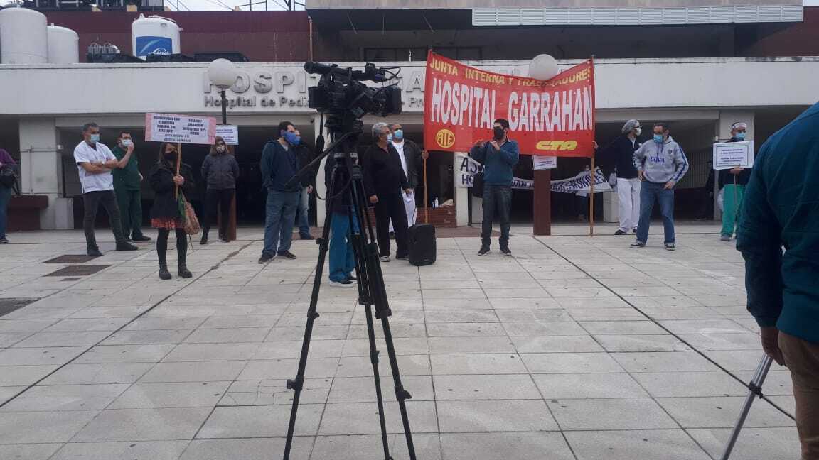 Este jueves 6 se desarrolló una protesta frente a la dirección del Hospital Garrahan de pediatría, en la entrada de Combate de los Pozos, convocada en forma conjunta por la Junta Interna de ATE y la Asociación de Profesionales y Técnicos y con el impulso de la Comisión de Insalubridad del hospital (CTIAP) y con la participación de trabajadores y trabajadoras de diferentes servicios del hospital.